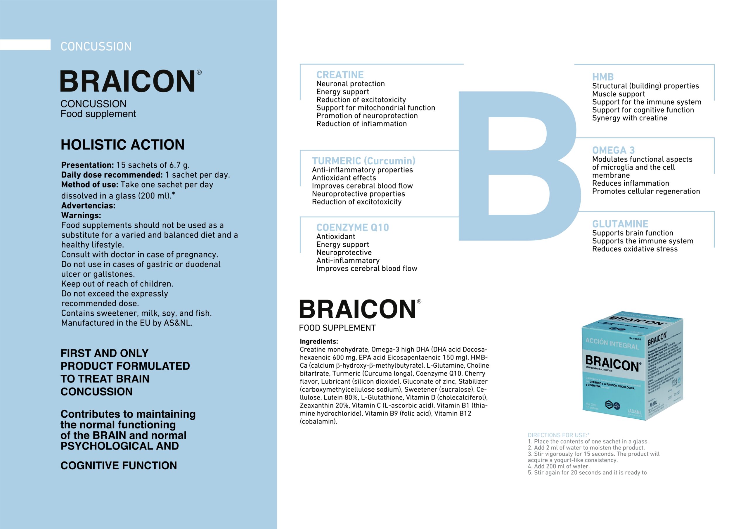 At AS&NL, together with our Medical Advisors, who are members of, among other medical societies, the CISG (Concussion International Sport Group), we understand that the specific circumstances of both mild to moderate traumatic brain injury (TBI) and concussion involve a very specific process of cellular injury and repair of the central nervous system (CNS), with structural, cognitive, and sensory impairment. By studying this injury process, we have designed BRAICON® to address the needs of patients suffering from concussion in its acute phase, as well as those experiencing prolonged symptoms (long-term), and especially to focus on primary, secondary, and tertiary prevention.