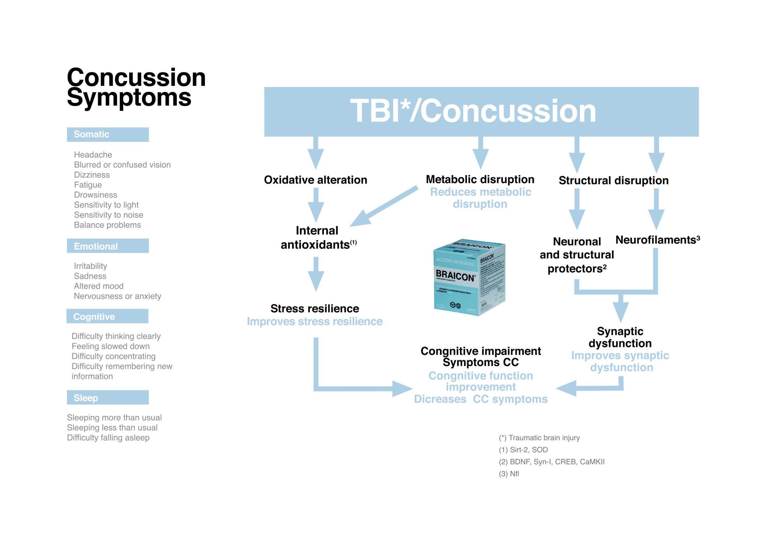 BRAICON® together with cognitive rest and physical rest, is the ideal support to treat CONCUSSION and thus solve a medical need not covered until now.